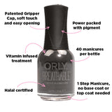 Our ORLY Breathable Nail Polish range doubles up as both a treatment and colour nail polish. Developed with a new advanced oxygen technology, it allows the nail bed to breathe. Our For The Record, charcoal black Breathable vegan certified Polish is great for: