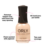 ORLY polishes are power packed with pigment for two coat coverage every time.