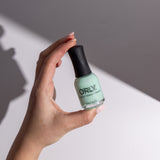 A pastel blue-green crème steeped in butterfly pea magic - tranquil, whimsical, and softly enchanting.