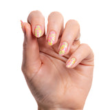 It’s the best day ever whenever you layer this starry topper. Neon orange stars paired with neon pink and green dots add a pop of fun to your nails.